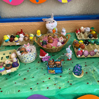 Como es tradición, los niños y niñas han pintado Easter Eggs (huevos de Pascua) y no podía faltar the Easter Bunny (el conejo de Pascua). Los mas pequeños han pintado sus propios huevos en papel y los cursos de tercero a sexto han hecho con huevos de verdad y diferentes materiales según su elección e imaginación una competición (the Easter Egg contest) por clase. Los ganadores y los participantes han recibido un premio. Como podéis ver en las fotos nos hemos divertido creado Easter Eggs super originales y bonitos todos. Gracias a todos por colaborar y....HAPPY EASTER, FELIZ PASCUA!